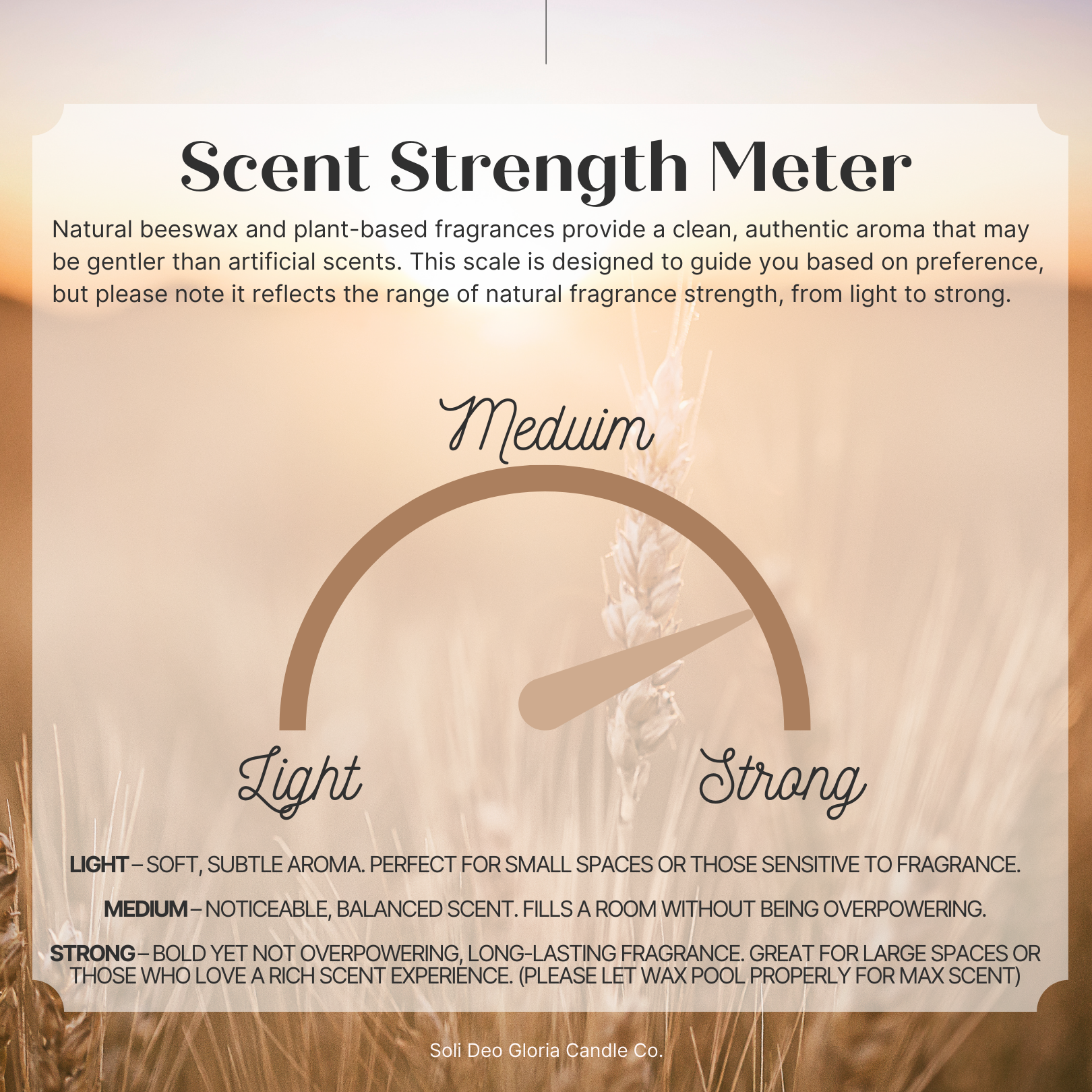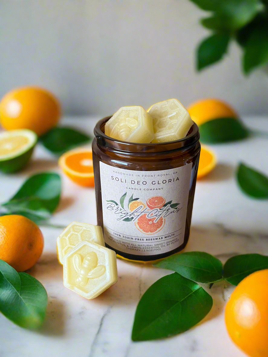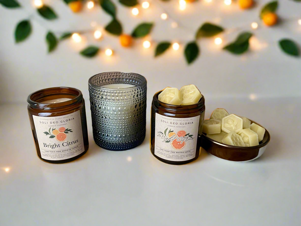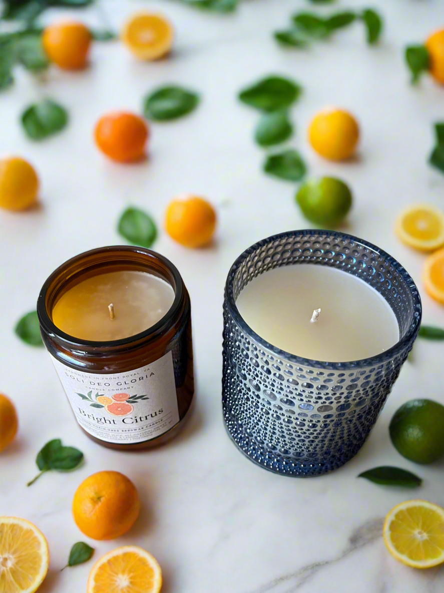 At Soli Deo Gloria Candle Company, we believe transparency is a form of integrity—what goes into our products should be clear, honest, and something we’re proud to share. That’s why we choose 100% pure beeswax and organic hemp wicks—natural, non-toxic materials that support clean burning and align with our commitment to safer, simpler ingredients. All oils and extracts are chosen for quality and third party tested for purity.