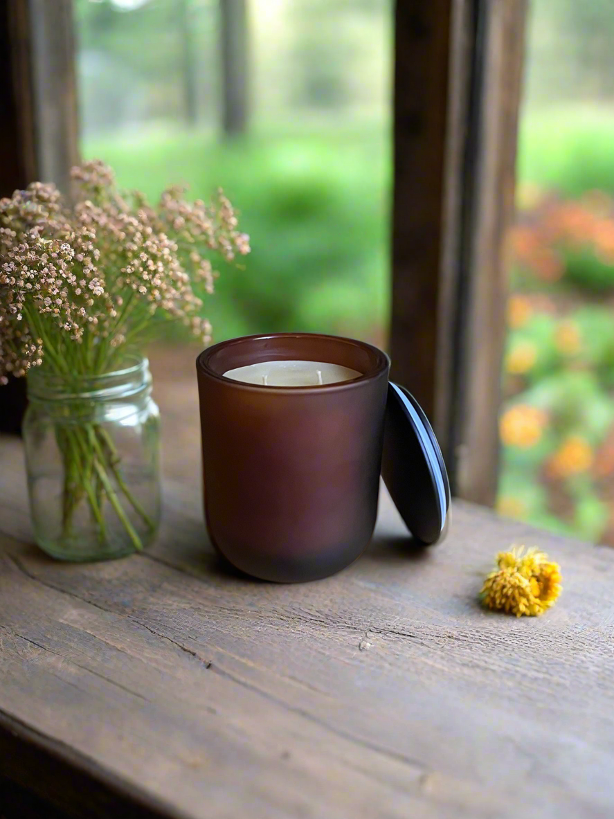 - Frosted Double Wick Amber Candle: 10oz & up to 50 hour burn time