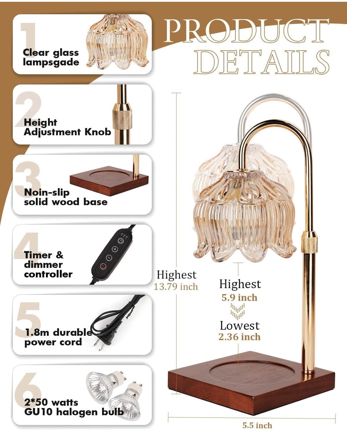 Candle Lamp Warmer with Timer, Adjustable & Dimmable with 2 Bulbs (3 style options)