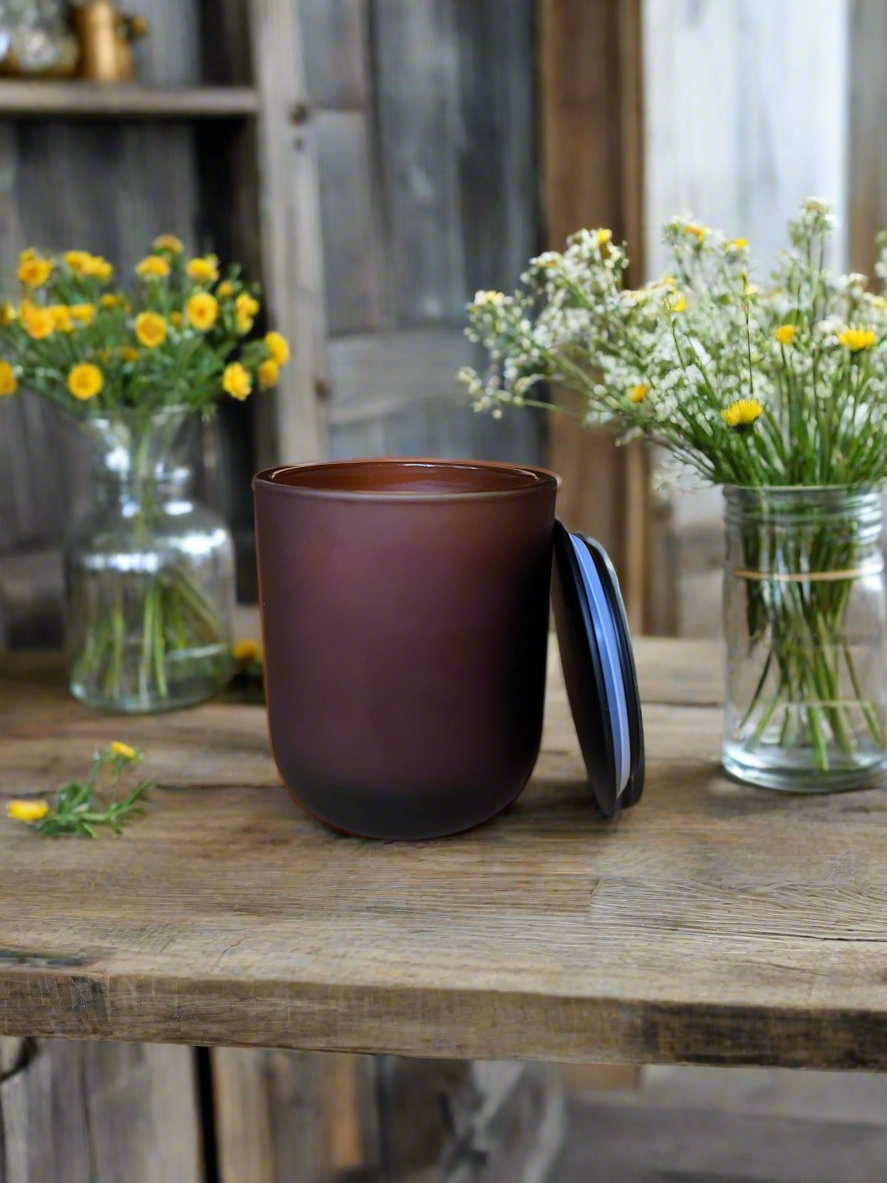 - Frosted Double Wick Amber Candle: 10oz & up to 50 hour burn time